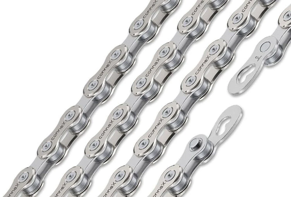 Mit vernickelten Außenlaschen bietet die Wippermann Connex 904 ein optimales Preis-Leistungs-Verhältnis. Perfekte Schalteigenschaften sind dank der High Performance-Lasche garantiert. Zusätzlich sorgt die neue Radialnietung für maximale Widerstandsfähigkeit und Sicherheit.