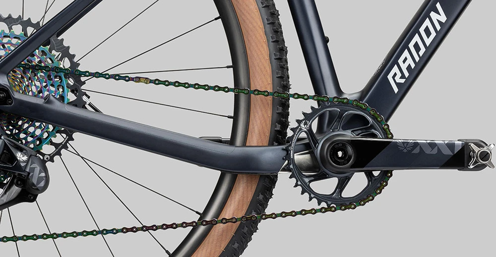Dazu kommt die elegante Erscheinung, die dadurch unterstĂĽtzt wird, dass durch die konsequente Auslegung auf Einfachantriebe keine ĂĽberflĂĽssigen Rahmenöffnungen das Erscheinungsbild trĂĽben. Auch bei der Federgabel sind wir keine Kompromisse eingegangen: hier arbeitet die Fox 32 Factory Step Cast mit ihren 100mm feinsten Federwegs, die von Weitem sichtbare Kashima Beschichtung sorgt fĂĽr bestes Ansprechverhalten und neidische Blicke und bei Bedarf lässt sie sich auch noch vom Lenker aus sperren fĂĽr den Ăśberraschungsangriff am Berg! Bei der Schaltung haben wir ebenfalls aus dem Vollen geschöpft und SRAM‘ s elektronische XX1 Eagle AXS ans JEALOUS geschraubt. Neben den ĂĽblichen Eagle VorzĂĽgen wie extrem schnellen und knackigen Schaltvorgängen kommt hier noch die Selbstjustierung dazu, eine verstellte Schaltung gehört der Vergangenheit an. Die Schaltgruppe wird ergänzt von der extrem leichten XG1299 Kassette mit ihrer enormen Bandbreite von 10-52 Zähnen, die mit ihrem kupferfarbenen Schimmer das Kashima Coating der Gabel wunderbar matcht. Auch bei der Bremse gehen wir gewichtstechnisch aufs Ganze und spezifizieren die sehr leichte Magura MT8 SL, die einige Gramm einspart, aber bei der Bremswirkung nicht geizt. Dazu sparen wir bei der so wichtigen rotierenden Masse extrem Gewicht mit der Kombination aus dem superben Newmen Advanced SL X.A. Laufradsatz und den Top-Produkten von Schwalbe, der Kombination aus Racing Ray und Racing Ralph in leichter Super Race Karkasse und stylischer transparent skin Optik. Bei den restlichen Anbauteilen wie Lenker, SattelstĂĽtze und Sattel herrscht Carbon als Material vor, was zum sensationellen Gesamtgewicht beiträgt. Unser JEALOUS 10.0 EA ist bereit, wenn Du es bist!
