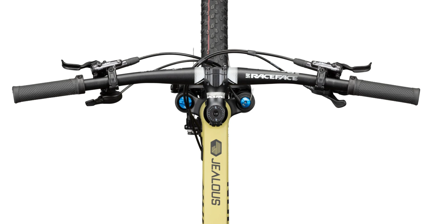 Wer das Paket aufschnĂĽrt, stößt zunächst auf den superben Alurahmen mit seinen zarten ca. 1.680 Gramm, der trotz geringen Gewichts alle technisch erforderlichen und sinnvollen Standards mitbringt. So sind nebem dem Verzicht auf eine Umwerferaufnahme fĂĽr die cleane Optik die SchaltzĂĽge innen verlegt, die Radachsen kommen im Boost Standard fĂĽr eine höhere Laufradsteifigkeit und der Rahmen ist fĂĽr die Verlegung einer Dropper Post vorbereitet. An der Front arbeitet eine FOX 32 Float Performance Step Cast Gabel mit ihren 100mm Federweg und ebnet mit superbem Federungsverhalten auch Wurzelteppiche und Steinfelder ein. Du willst den fiesesten Berg der Hausrunde hochsprinten? Kein Problem, Du kannst die Gabel ganz bequem vom Lenker aus per Remote sperren. Ăśber jeden Zweifel erhaben ist auch die Shimano XT Gruppe, sie steht fĂĽr perfekte Schaltvorgänge und solide Haltbarkeit. Im Fall des JEALOUS AL 10.0 gesellt sich auch noch die starke und zuverlässige Shimano XT Bremse dazu, die Dir viel Vertrauen geben wird und Dich immer dosiert verzögern lässt. Das Race Face Cockpit unterstĂĽtzt die Sicherheit auf dem Trail und platziert Dich angenehm im Bike, wo Du dank des bequemen Selle Italia Model X Superflow Sattels auch einige Stunden verbringen kannst. Leichte und dennoch stabile Mavix Crossmax Laufräder runden das Gesamtpaket ab, fĂĽr geschmeidiges Abrollen bei gutem Grip im Gelände montieren wir Schwalbe’s Top-Reifenkombination Racing Ray und Racing Ralph in der schicken transparent skin Variante. JEALOUS AL 10.0 – solid as a rock!