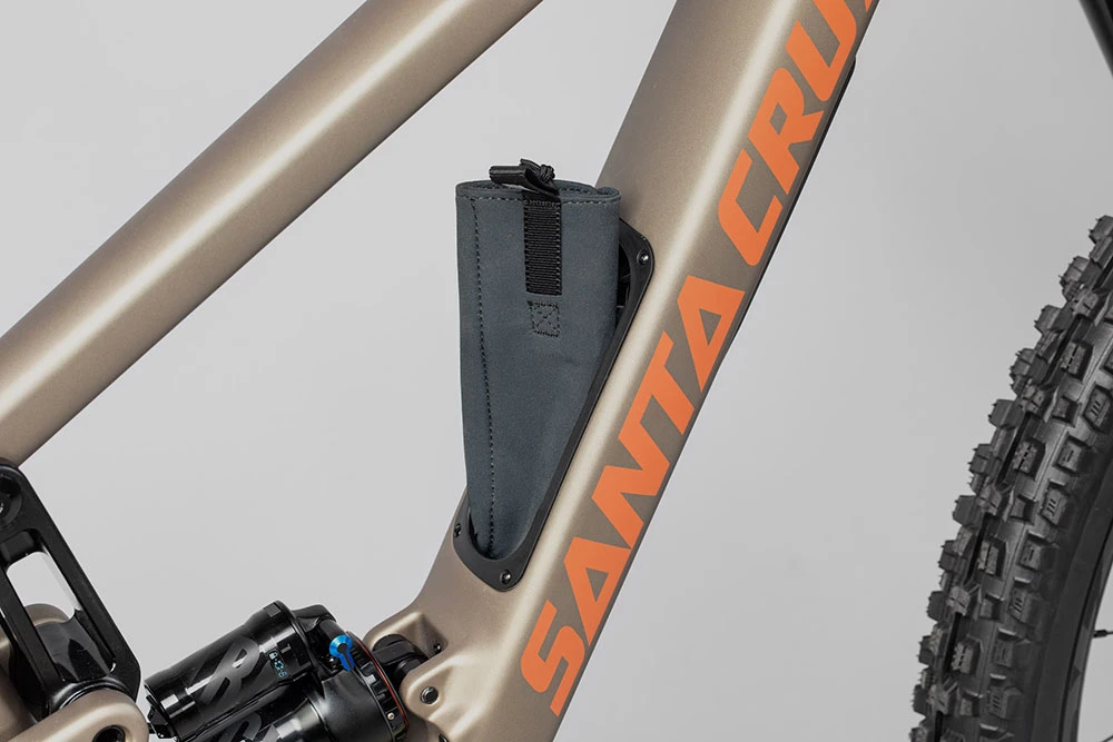Jeder spricht von dem starken Fahrwerk, der fortschrittlichen Carbon-Konstruktion und der perfekten Geometrie der Bikes von Santa Cruz. Aber was ist mit der geräumigen Glovebox, in der du (fast) alles verstauen kannst, was du unterwegs brauchst? Die Glovebox ist eine ausgereifte und deutlich verbesserte Interpretation einer Unterrohr-Klappe. Der Mechanismus des Verschlusses ist so clever wie einfach und macht das Klappern und das windige Gefühl anderer Staumöglichkeiten am Bike überflüssig. Die Glovebox bietet Platz für „Tool Wallet“ und „Tube Purse“ im Rahmen, die serienmäßig dabei sind. Pack sie zusammen und verstaue alles in deinem Rahmen. Du musst also nie wieder ohne Minitool und Ersatzschlauch starten oder sie außen an deinen Rahmen heften.