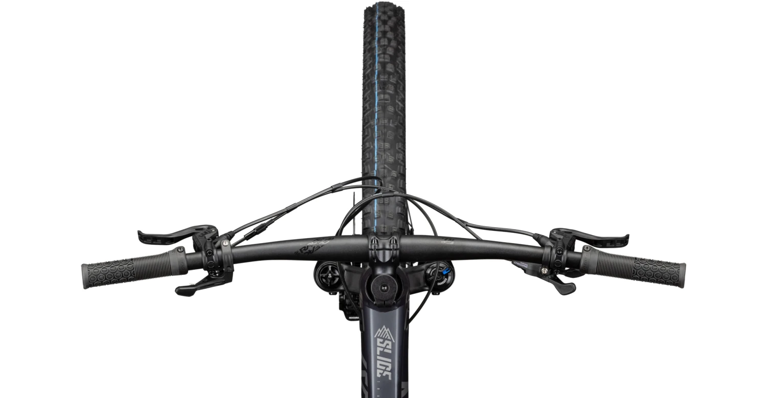 Die RockShox Lyrik Select Gabel mit 150mm Federweg spricht sehr sensibel an und gibt Dir dennoch bei steilen Passagen und Stufen optimale Sicherheit. Mit den 140mm Federweg des RockShox Deluxe Select+ Dämpfers lässt sich jede Wurzel glatt bĂĽgeln und der Trail SpaĂź kann beginnen! Eine klare Linie durchläuft das Cockpit bestehend aus Lenker und Vorbau aus der Race Face Ride Serie. So lässt sich super Druck auf das Vorderrad aufbauen und die Kontrolle liegt in deiner Hand. Die Magura MT Thirty Custom Bremse mit ihrem Vierkolben Bremssattel vorne bringt Dich in brenzligen Situationen schnell zum Stehen. Maximalen Speed ermöglicht Dir das Zusammenspiel des 12-fach Shimano Antriebs. Vollendet wird das Bike durch den griffigen Allroundreifen Nobby Nic in ADDIX Speedgrip Gummimischung und mit Superground Karkasse aus dem Hause Schwalbe. Gepaart mit dem soliden SUNringlĂ© DĂĽroc 35 Laufradsatz lässt sich jedes Hindernis mit Leichtigkeit bewältigen. Ready, Steady, Go – das SLIDE TRAIL AL 7.0!