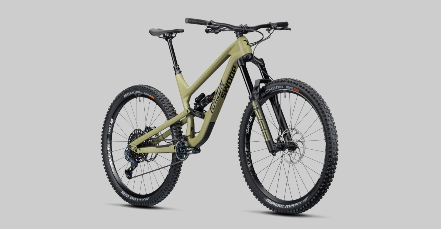 Die Rock Shox ZEB Select Gabel mit 38mm Standrohren bietet dir 170mm an der Vorderachse, am Heck schluckt der Super Deluxe Select+ Dämpfer ebenfalls 170mm groben Untergrund weg. Die SRAM GX Eagle 1×12 Schaltung hält Dir in jedem Gelände den richtigen Gang parat und ermöglicht mit ihrer enormen Spreizung der Kassette von 10-52 Zähnen auch sehr steile Climbs. Wenn es danach ebenso steil runter geht, hast Du mit der Magura MT5 einen sehr potenten Stopper an Bord, der Dich jederzeit kontrolliert abbremst. FĂĽr den nötigen Grip sorgen auch Schwalbe’s Top-Reifen Magic Mary und Big Betty in der Addix-Soft Mischung und mit Super Trail Karkasse, die sich mit den unverwĂĽstlichen SUNringlĂ© DĂĽroc SD37 Expert Laufradsatz perfekt ergänzen. SWOOP it.