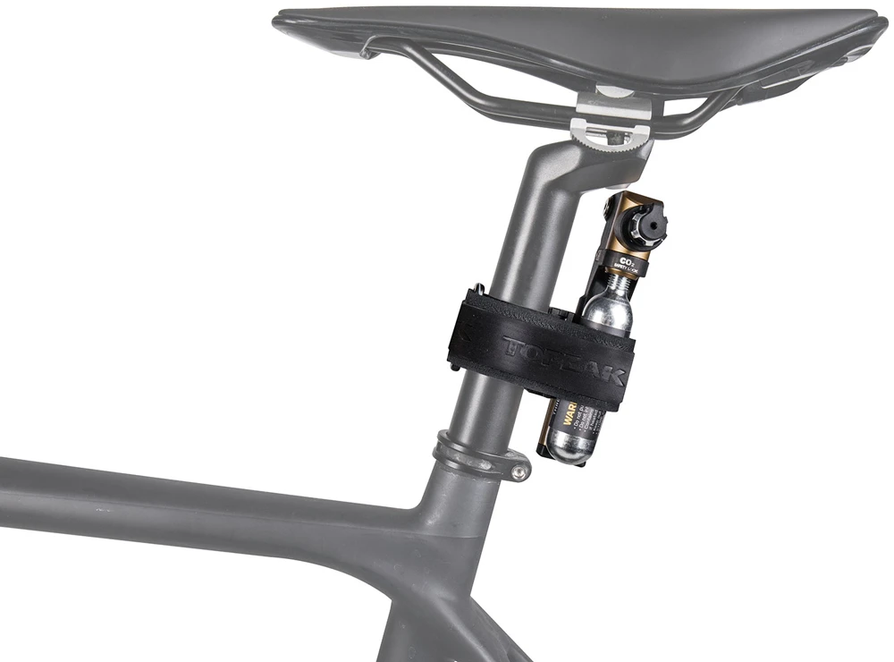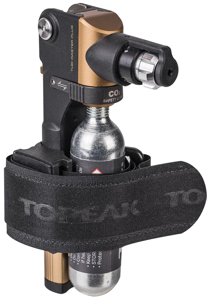 - Mit der mitgelieferten Halterung kann das Tubi Master+ Set mittels Klettgurt an der SattelstĂĽtze oder am Rahmen befestigt werden